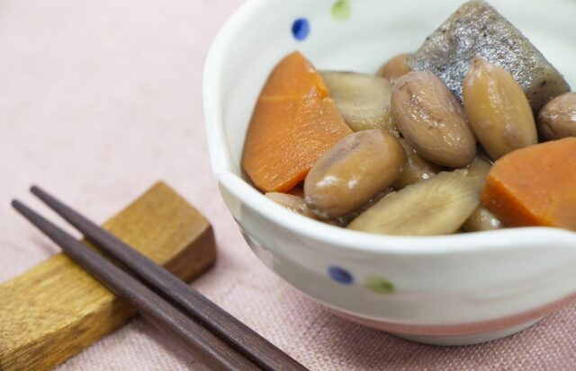 千葉県は日本一の落花生の産地で、新鮮でおいしい落花生がたくさんとれます。そのため、千葉では昔から落花生を使った料理が親しまれてきました。落花生の煮豆は、生の落花生を砂糖やしょうゆで甘く煮た料理です。一般的な煮豆と違い、大豆ではなく落花生を使うのが特徴です。煮ることで落花生はやわらかくなり、ほんのり甘くて、優しい味わいが楽しめます。この料理は、おやつとして食べられることが多いですが、ご飯のおかずとしても食べられます。また、おせち料理に入れる家庭もあります。落花生は栄養が豊富で、たんぱく質や食物繊維がたくさん含まれているため、体にも良い食べ物です。作り方はとても簡単です。まず、生の落花生をしっかり洗い、水に一晩つけて戻します。そして、水と一緒に鍋に入れてやわらかくなるまで煮ます。最後に砂糖やしょうゆを加えて味をつけ、さらに煮込めば完成です。落花生の煮豆は、千葉県ならではの素朴でおいしい料理です。ぜひ一度食べてみてください!