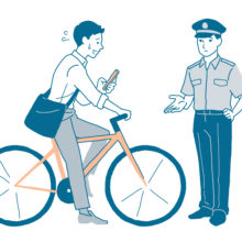 「Lái xe trong tình trạng sử dụng điện thoại」bao gồm việc nói chuyện hoặc sẻu dụng điện thoại trong khi lái xe đạp, hiện đã bị pháp luật cấm và các hình phạt đã được tăng cường.「Lái xe trong tình trạng say rượu」bao gồm việc lái xe trong tình trạng say rượu, cũng phải chịu các hình phạt, với các hình phạt không chỉ áp …