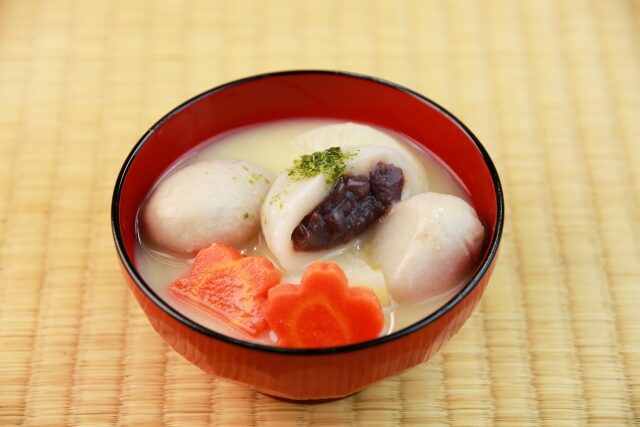 Tại tỉnh Kagawa, từ xưa đã có phong tục ăn canh cá với miso trắng. Cùng với truyền thống sản xuất nhiều đường, người ta đã thêm mochi tròn nhân đậu ngọt (anko) vào canh. Kagawa nổi tiếng với ‘ mì Sanuki Udon’, nhưng món ‘canh bánh mochi nhân đậu đỏ’ này cũng là hương vị Tết quan trọng đối với người dân nơi đây.”
